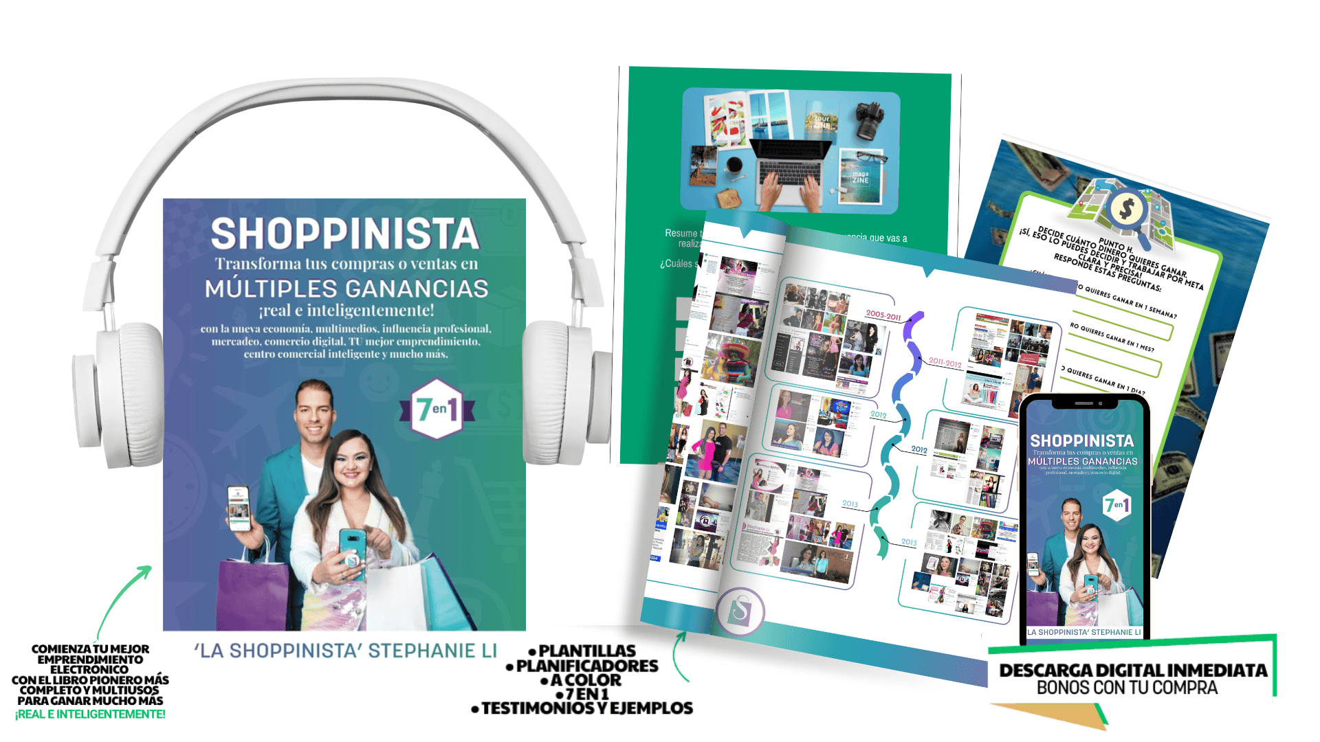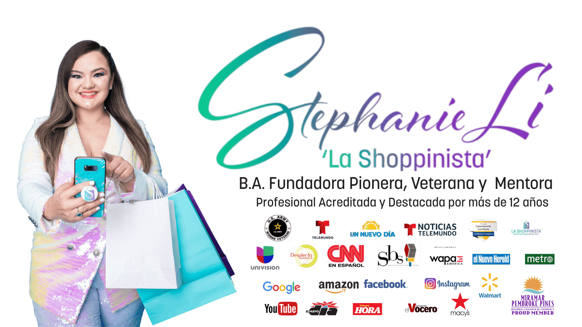Stephanie Li 'La Shoppinista' te comparte sus experiencias profesionales como emprendedora online (multimediapreneur) por más de 10 años y resultados exitosos que han estado llenos de innovación, creatividad, visión, pasión, determinación, investigaciones, pruebas, errores, resiliencia, lecciones, triunfos, cambios constantes en nuestros tiempos y cientos de miles de testimonios de personas a las que ha servido, ayudado a comprar mejor y a realmente ganar mucho más del shopping personal o comercial, tanto online como offline. Y estas ganancias incluyen los millones de dólares generados a marcas y comercios de reconocimiento nacional, multinacional y global, del mercado hispano en Estados Unidos y Puerto Rico.